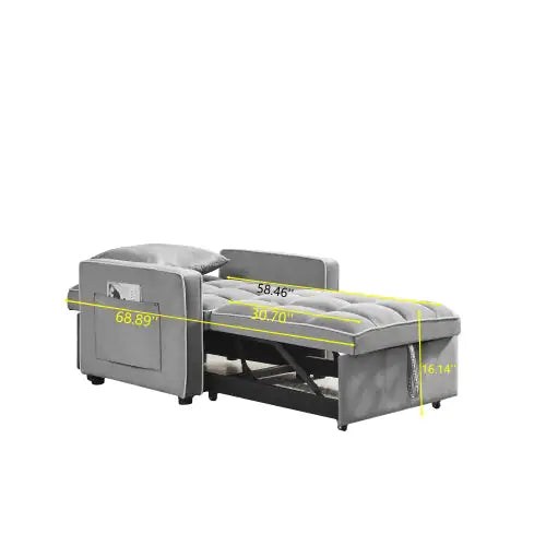 3-in-1 Sofa Bed, Chair, Fold-out Sofa Bed, Adjustable Backrest Into Sofa, Chaise Longue, Single Bed, Modern Chair Bed For Adults, Bed, Grey