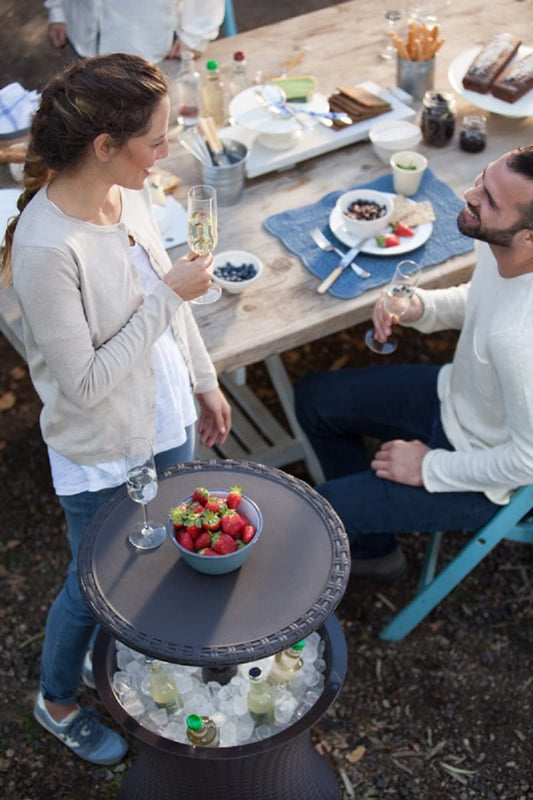 "Transform your outdoor space with this Espresso Brown Side Table featuring a Built-In Beer and Wine Cooler! 🍻🍷 #OutdoorLiving #Entertaining"