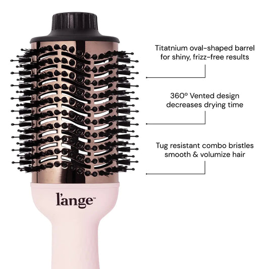 L'ANGE HAIR Le Volume 2-in-1 Titanium Blow Dryer Brush | Hot Air Brush in One with Oval Barrel | Hair Styler for Smooth, Frizz-Free Results for All Hair Types (Blush - 75 mm) (Blush - 75mm)